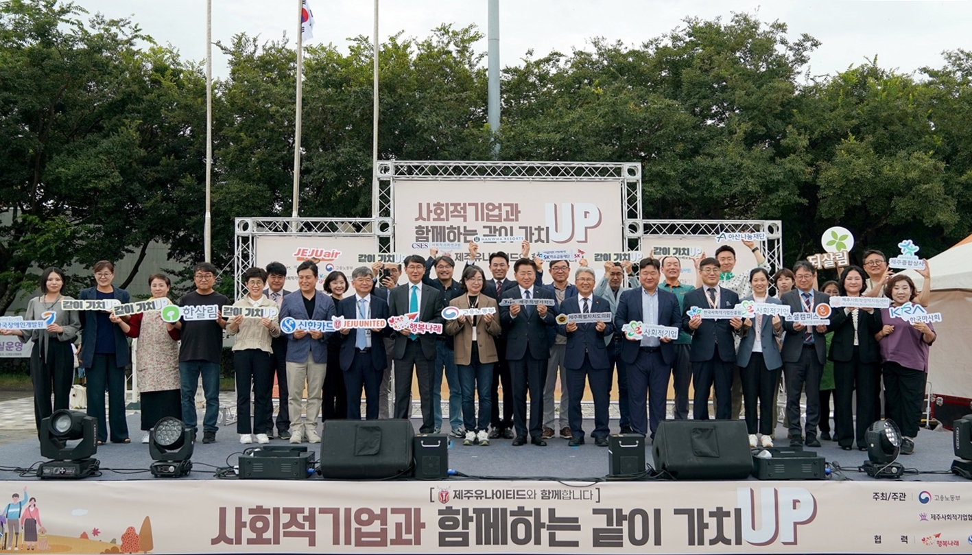 기업과 함께하는 같이가치UP’은 고용노동부와 제주특별자치도, 한국사회적기업진흥원, 제주사회적기업협의회, 제주유나이티드가 주관하는 도내 최대 규모 행사다. 사회적 기업들의 상품 전시 및 홍보 부스 운영을 통해 사회적 기업 성과를 알리고 지속가능한 생태계를 조성한다는