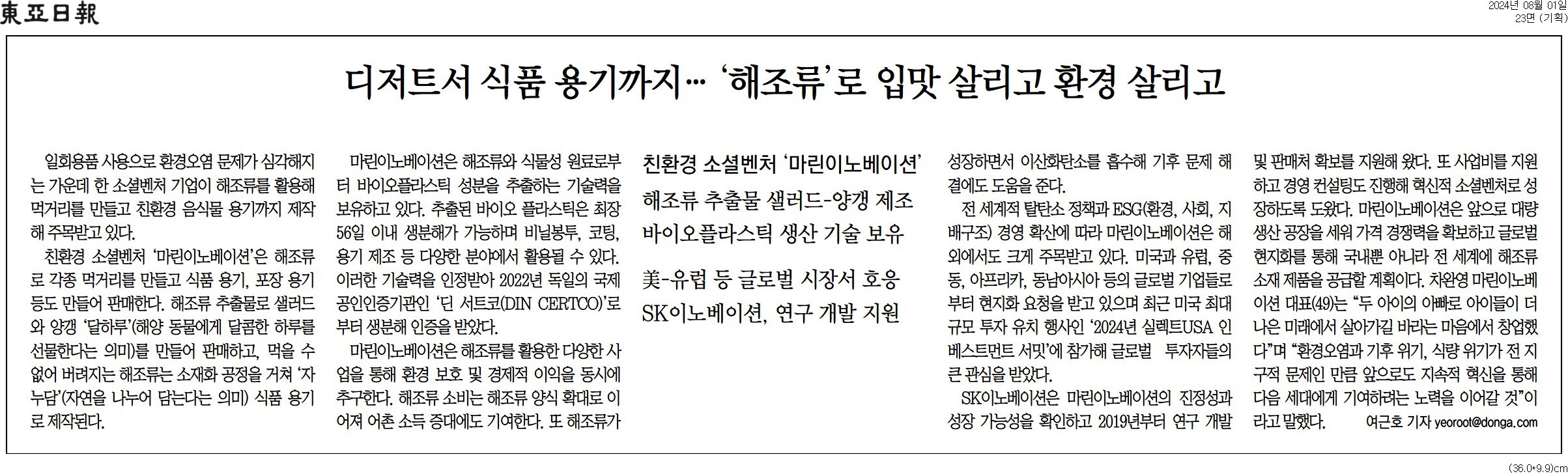 [동아일보 행복나눔] 디저트서 식품 용기까지… ‘해조류’로 입맛 살리고 환경 살리고