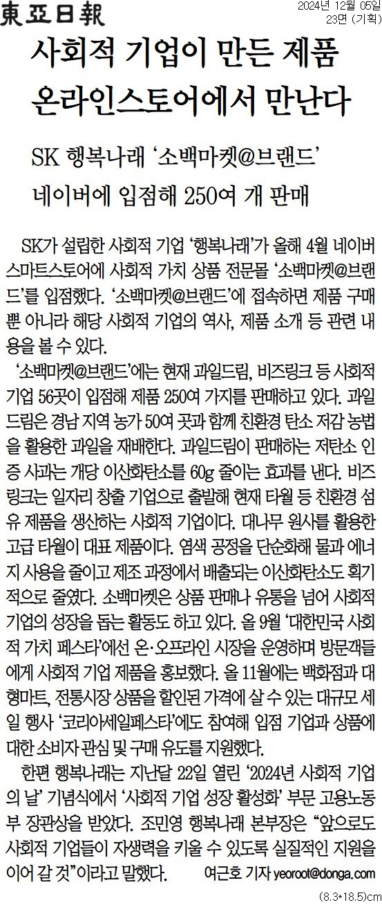 [동아일보 행복나눔] 사회적 기업이 만든 제품, 온라인스토어에서 만난다