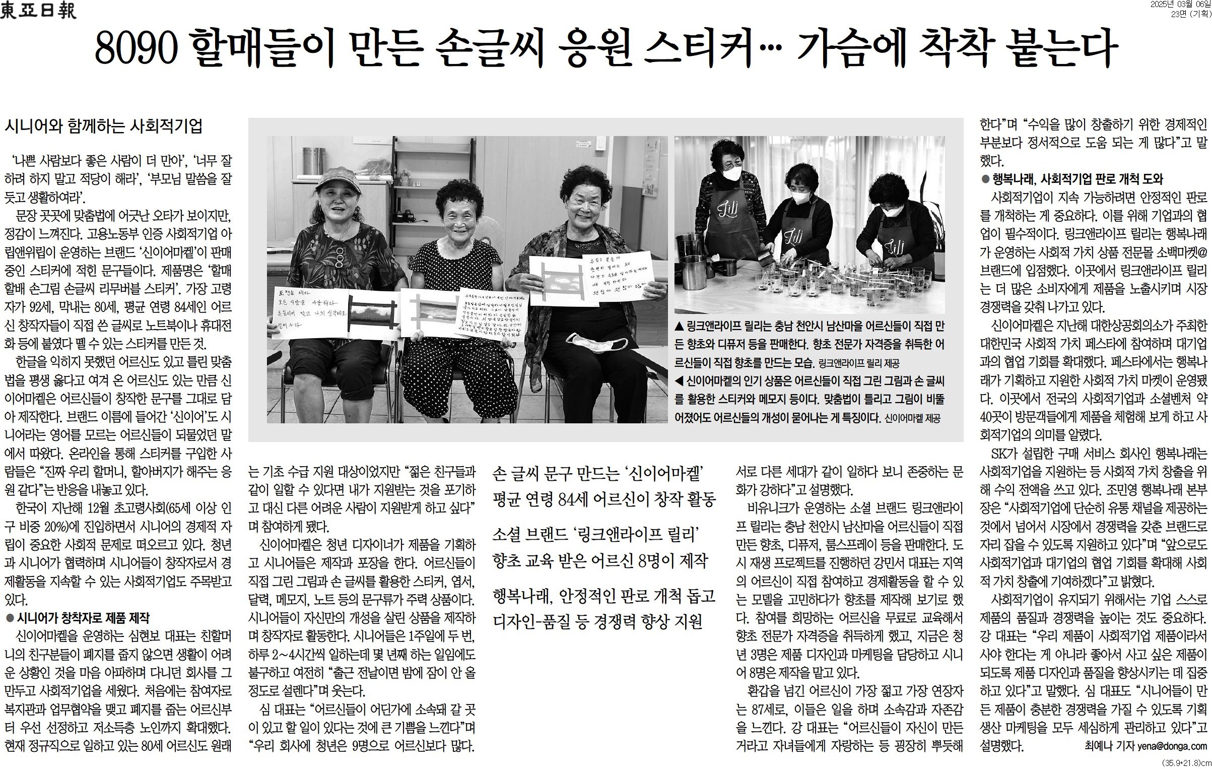 [동아일보 행복나눔] 8090 할매들이 만든 손글씨 응원 스티커… 가슴에 착착 붙는다