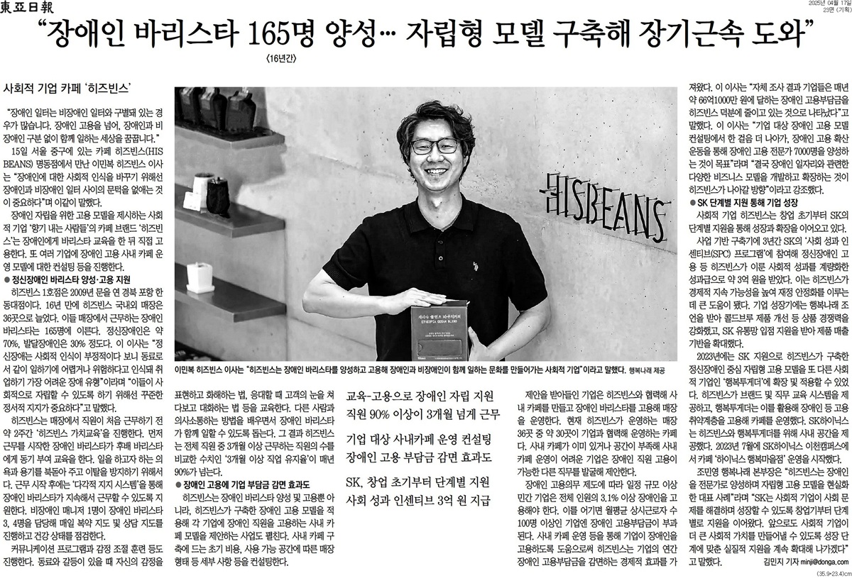 [동아일보 행복나눔] “장애인 바리스타 165명 양성… 자립형 모델 구축해 장기근속 도와”