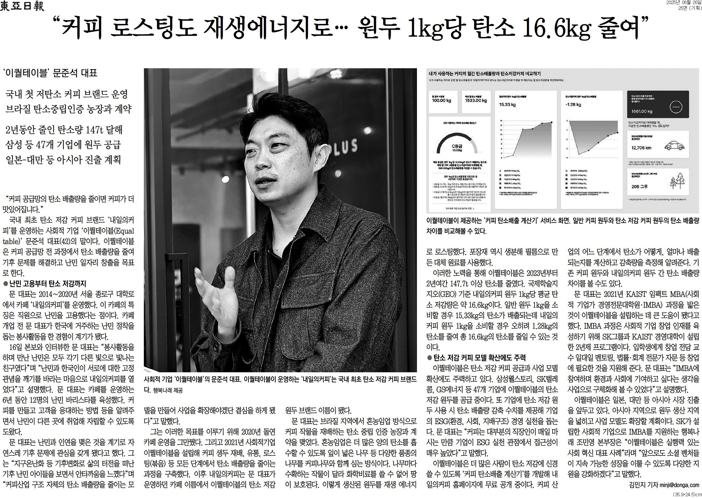 [동아일보 행복나눔] “커피 로스팅도 재생에너지로… 원두 1kg당 탄소 16.6kg 줄여”