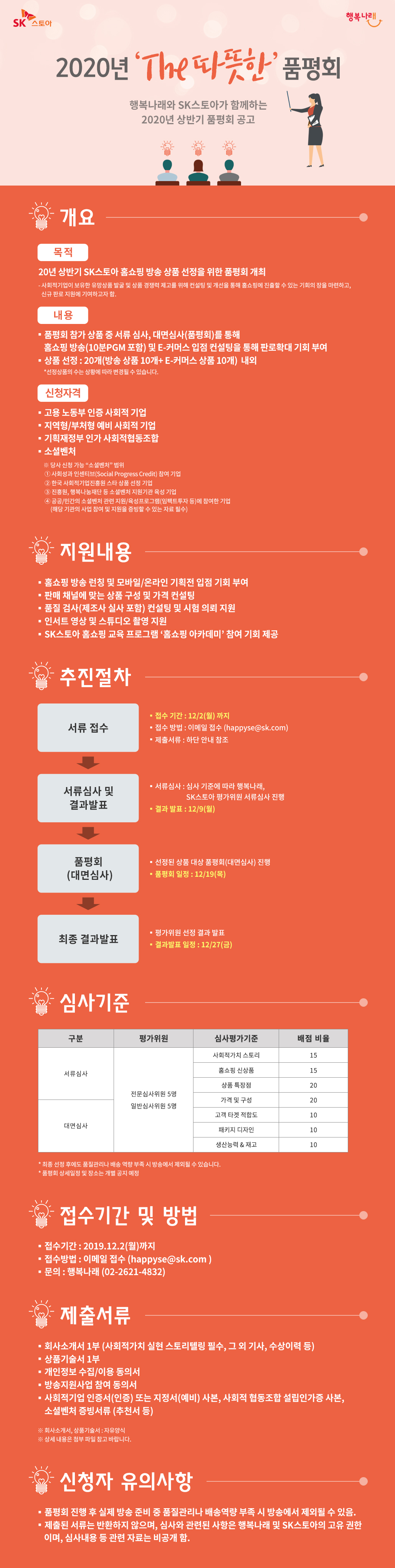 2020년 상반기 SK스토아 방송상품 선정 품평회 참여 기업을 모집합니다.